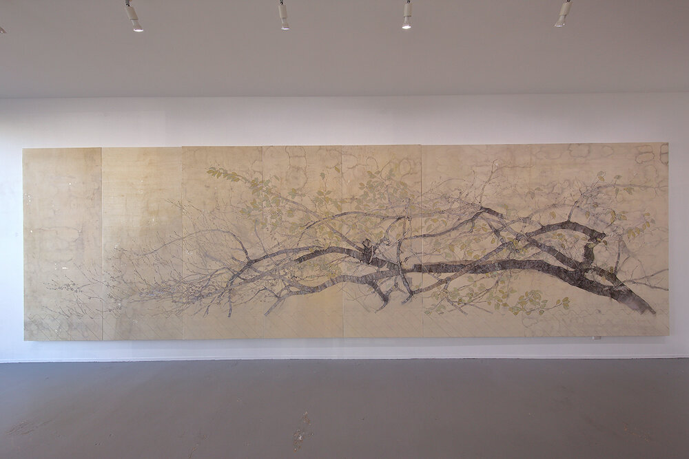 桜 | 雲肌麻紙、墨、岩絵具、雲母、銀箔 | 186×615.5cm | 2024-2025